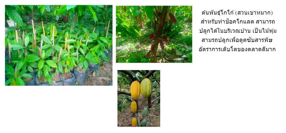 ต้นพันธุ์โกโก้ สวนเขาหมาก ทำช็อคโกแลต สามารถปลูกได้ในบริเวณบ้าน เป็นไม้พุ่มดูดซับสารพิษ อัตราการเติบโตของตลาดดีมาก เติบโตได้ทุกภาค ความสูงประมาณ 30-40 ซม.