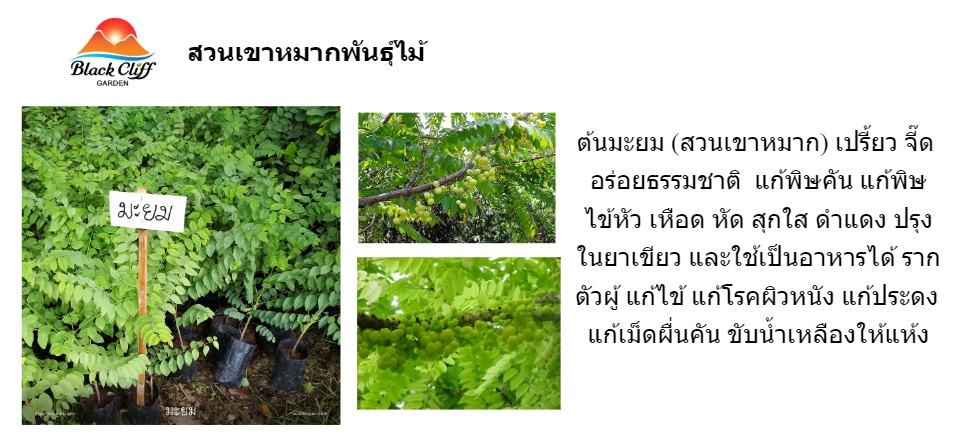 ต้นมะยม สวนเขาหมาก เปรี้ยว จี๊ด อร่อยธรรมชาติ แก้พิษคัน แก้พิษไข้หัว เหือด หัด สุกใส ดำแดง ปรุงในยาเขียว และใช้เป็นอาหารได้ รากตัวผู้ แก้ไข้ แก้โรคผิวหนัง แก้ประดง แก้เม็ดผื่นคัน ขับน้ำเหลืองให้แห้ง